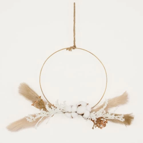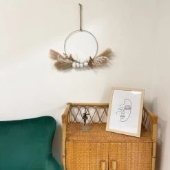 Craquez pour cette magnifique couronne de plumeaux et de boules de coton de 30cm qui apportera une touche rétro et vintage à votre intérieur !