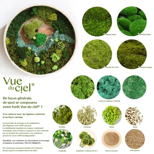 Ne nécessite ni arrosage, ni lumière, nientretien. Création durable et écoresponsable.