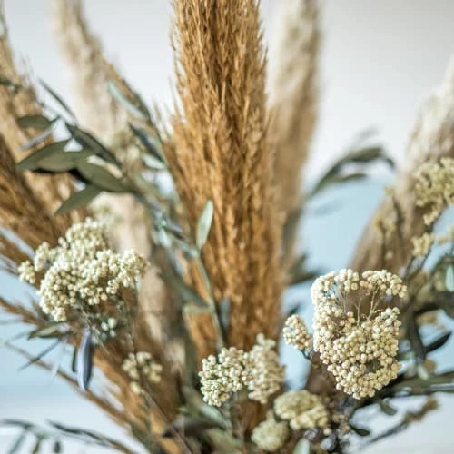 Ce bouquet de fleurs sĂ©chĂ©es fait pour durer, rĂ©veillera Ă coup sĂ»r votre dĂ©coration dâintĂ©rieur.