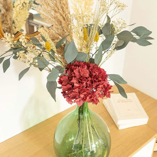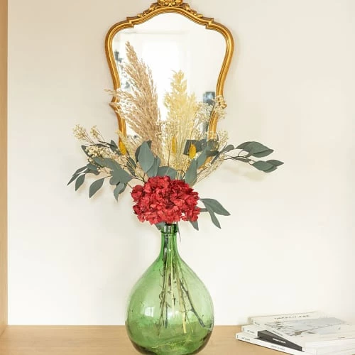 Pour information, notre dame-jeanne mesure : 32cm de hauteur, 20cm de large et 3 cm d’ouverture au col (bouquet livré sans dame-jeanne)