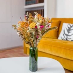 Setarea blanc, eucalyptus séché, rodantes blanches, ruscus blanc, avoine naturelle, helychrises blanches, et limonium et statice blanc, achillées blanches