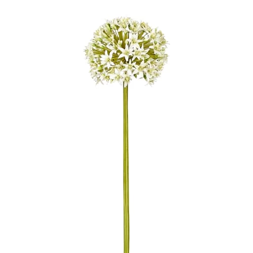 Grande tige d’allium Mount Everesten boule. Cet ail d’ornement est une plante bulbeuse peu courante et très élégante. Ombelle blanche bien ronde et légère, transpercéede nuances vertes et composée de centaines de petites fleurs.