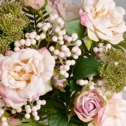 Magnifique compositions de roses artificielles dans leur pot en ciment. Cet arrangement floral est idéal pour combler les espaces non décorés de votre intérieur.