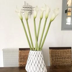 Grande tige d’arum artificiel. L’arum est appelé « Calla lily » ou « Fleur du mariage ». Sa forme moderne, graphique et épurée toute en arrondis et légèrement en pointe au bout apporte élégance à votre intérieur. Idéale sur un bureau ou sur une table de salon. Il est possible d’ajouter de l’eau au fond d’un vase transparent pour compléter l’illusion.