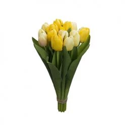 Petit bouquet de 12 tulipes artificielles avec feuillage.Ce bouquet s’accordera parfaitement dans notre large sélection de vases.