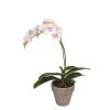 Conseil: Prévoir une hauteur de vase inférieure de 10 cm par rapport à la taille de la tige pour mettre en valeur la fleur. Le gypsophile, du skimmia et le piquet de feuille complèteront à merveille ce bouquet.
