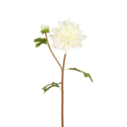 Tige artificielle de Dahlia avec feuilles. Le dahlia apportera à votre intérieur une touche romantique et sobre grâce à sa tête de fleur généreuse. Certaines déclinaisons de cette tiges présentent des bourgeons très réalistes.