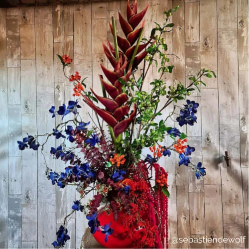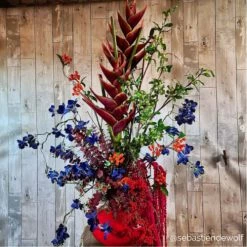 Héliconie artificielle. Grâce à sa forme originale en pointe et à sa belle couleur. cette tige apporte une touche d’exotisme à vos grandes compositions. ou à elle seule. dans un grand vase transparent.