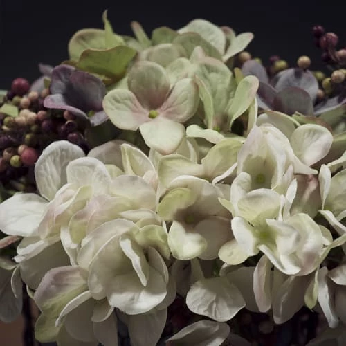 Tige d’hortensia artificielle. L’hortensia se démarque grâce à la couleur tendre de ses fleurs généreuses et saura faire effet dans une composition florale. Cette fleur volumineusese marie bien dans un vase ou sur une table lors d’un repas de fête.