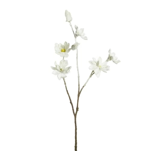 Branche de magnolia artificielle enneigée et bourgeons. Cette jolie fleurgénéreuse sera parfaite pour décorer un intérieur et le décorer de manière élégante. Cette tige est permet decréer une grande composition florale élégante pour vos fêtes de fin d’année.