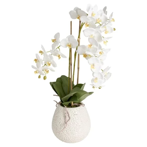 Orchidée phalaenopsis artificielle blanche dans son pot blanc en argile à motif en relief effet coquille d’oeuf.Sa fabrication de haute qualité assurera à votre orchidée une durabilité hors pair et conservera son étincelante beauté au fil du temps. L’orchidée est considérée comme la plus belle des plantes grâce à son élégance et a beauté naturelle. De plus. vous pourrez profiter de sa beauté toute l’année sans avoir à vous soucier de son entretien.