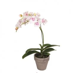 Petite orchidéeDendrobium artificielle blanche et rose en pot.Sa fabrication de haute qualité assurera à votre orchidée une durabilité hors pair. De plus, vous pourrez profiter de sa beauté toute l’année sans avoir à vous soucier de son entretien.Existe en plusieurs tailles.