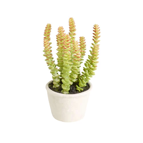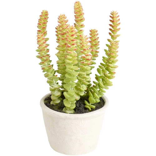 Succulente de type crassula Falcata artificielle verte dans son pot. Cette plante grasse apportera à votre intérieur une petite touche de déco très actuelle et se place sur une étagère ou un meuble selon vos envies.