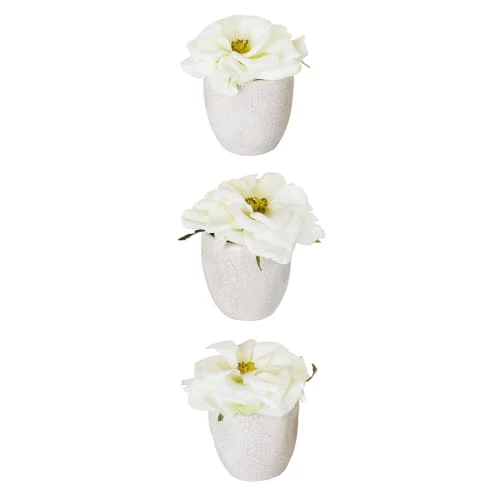 Magnifique ensemble de 3 roses dans leurs pots blancs en céramique craquelée.Par leur élégance naturelle, les roses blanches sont devenues un incontournable de la décoration design. Idéal pour orner une table pour instaurer une atmosphère romantique et chic.